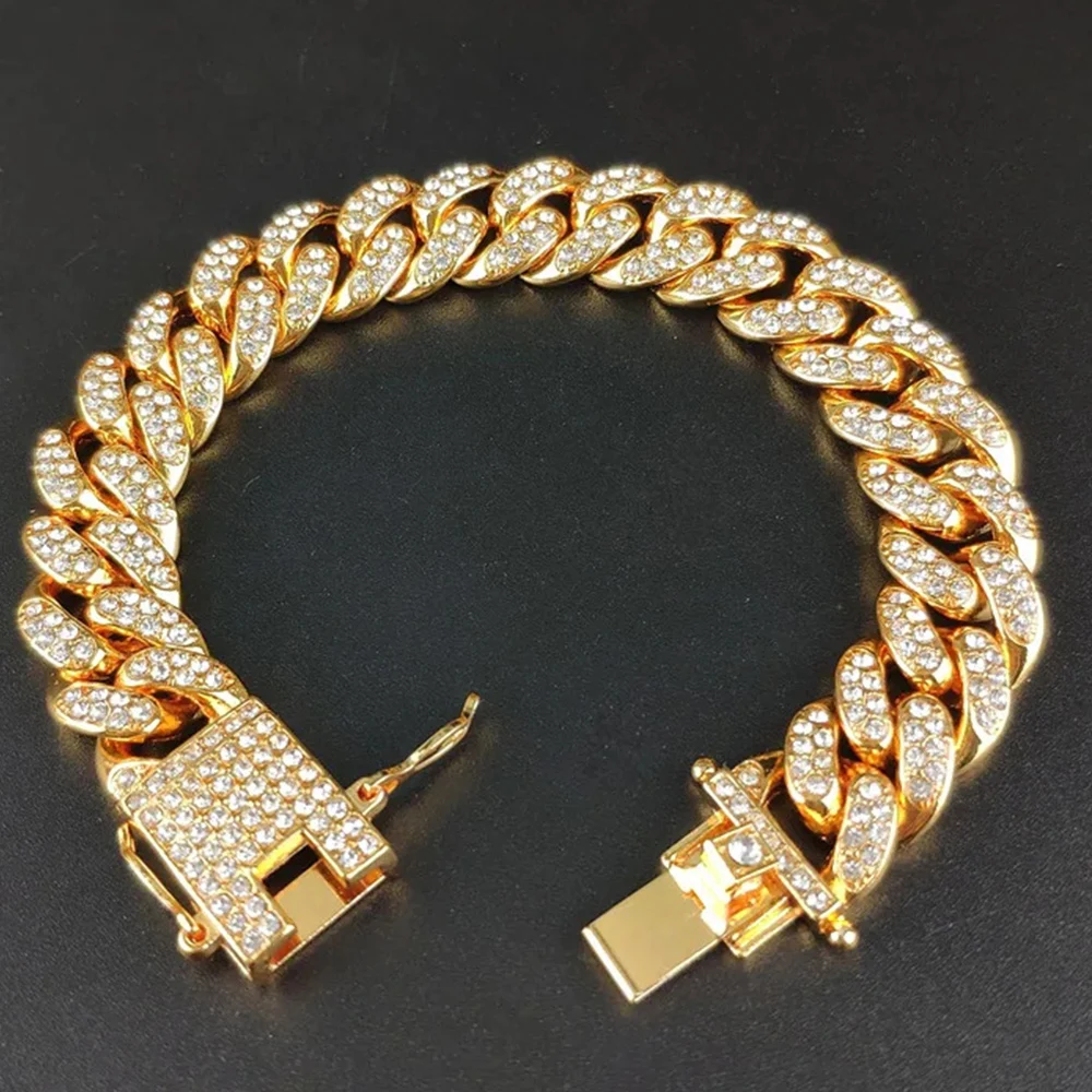 Nome: pulseira de hip hop de corrente cubana de pedra de cristal completa para homens